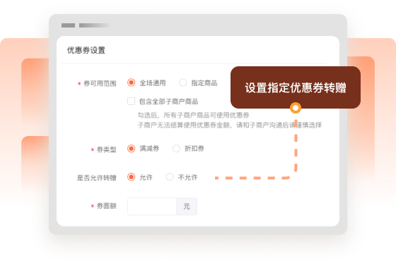 在优惠券编辑中,可以根据营销策略设置指定优惠券是否允许转赠。