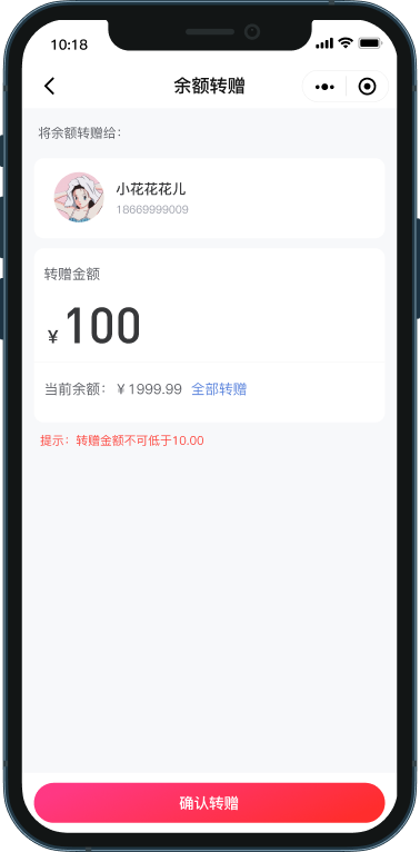 吉祥数字寓意的余额/积分转赠亲友