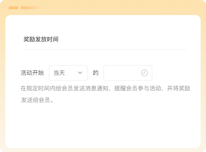 支持设置活动当天或者之前7天的固定时间点自动为会员发放奖励。