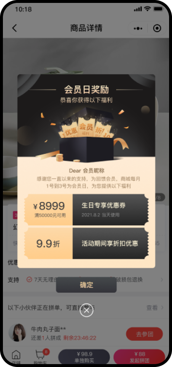 商户可以根据会员日的实际情况,自定义活动弹窗的样式和内容。